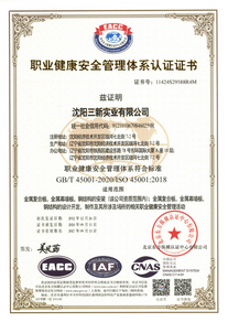 職業(yè)健康安全管理體系認證證書 |