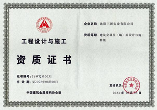 建筑幕墻工程設計專項甲級、輕型鋼結(jié)構(gòu)工程設計專項甲級