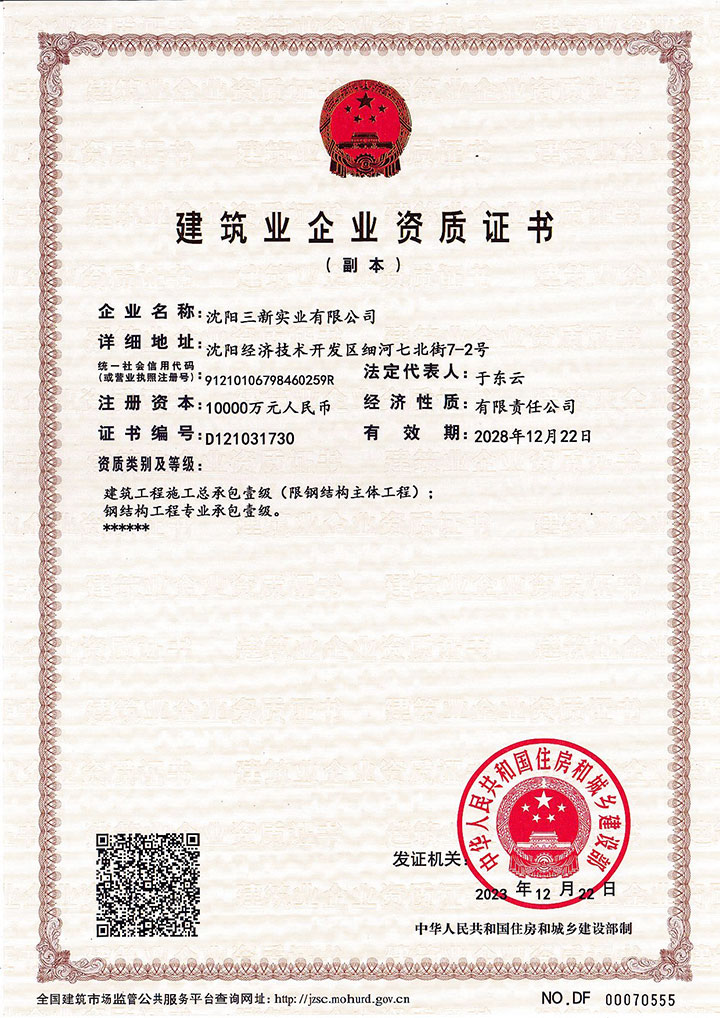 建筑工程施工總承包壹級、鋼結(jié)構(gòu)工程專業(yè)承包壹級