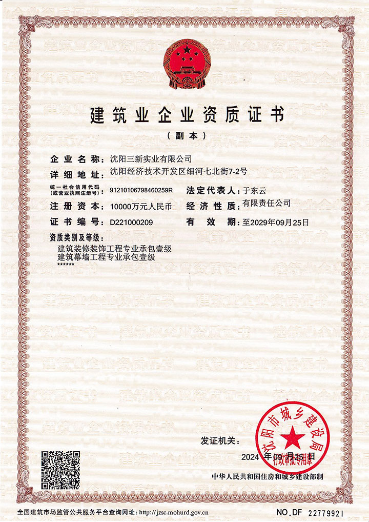 建筑裝修裝飾工程專業(yè)承包壹級、建筑幕墻工程專業(yè)承包壹級