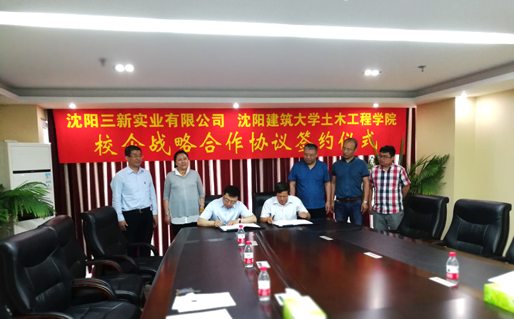 2017年6月14日,沈陽建筑大學(xué)土木工程學(xué)院賈連光書記一行參觀了三新集團(tuán)廠區(qū)及總部,并進(jìn)行了深入的會(huì)談。之后雙方正式簽訂戰(zhàn)略合作協(xié)議。雙方本著共同發(fā)展的目的,重點(diǎn)在人才培養(yǎng)、科技創(chuàng)新、技術(shù)交流等方面開展廣泛、密切的合作。雙方希望通過建立密切、長久及融洽的戰(zhàn)略合作伙伴關(guān)系,充分發(fā)揮高校和企業(yè)各自的技術(shù)和人才優(yōu)勢(shì),緊密合作,提升企業(yè)的研究水平和競(jìng)爭(zhēng)實(shí)力,同時(shí)增強(qiáng)學(xué)校應(yīng)用技術(shù)人才的培養(yǎng)能力,促進(jìn)工程技術(shù)類應(yīng)用性學(xué)科的建設(shè)。協(xié)議的簽訂為進(jìn)一步完善公司產(chǎn)學(xué)研模式,提高專利成果的轉(zhuǎn)化速度,都有著重要促進(jìn)作用,同時(shí)為各自的今后發(fā)展增添新動(dòng)力。