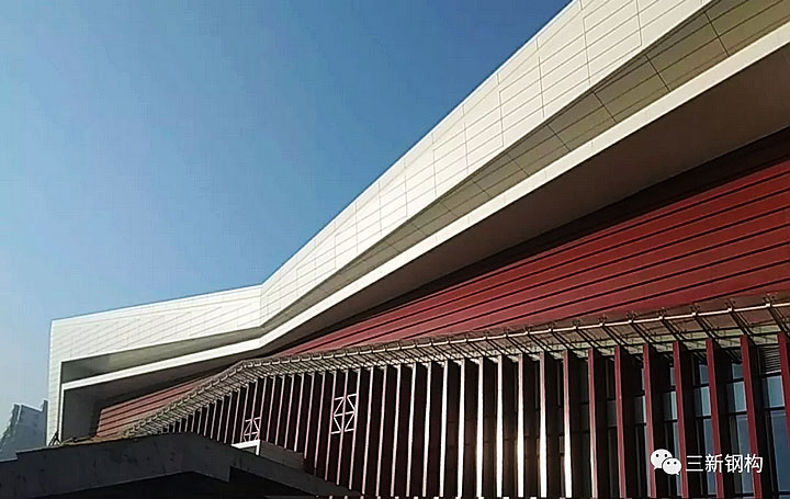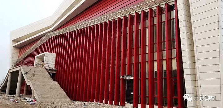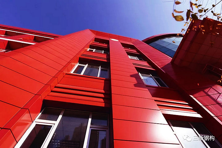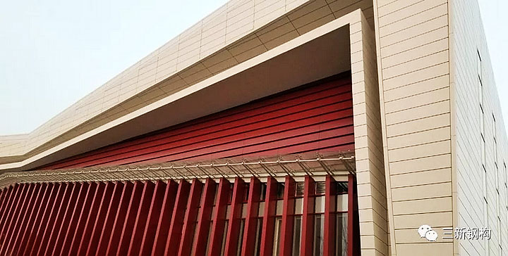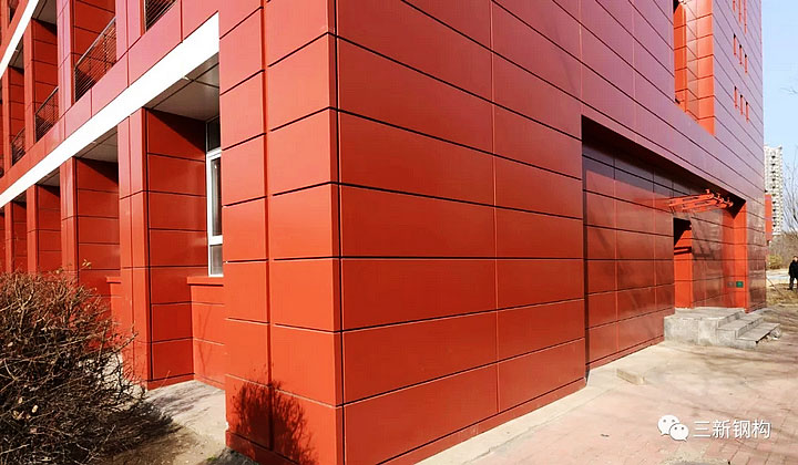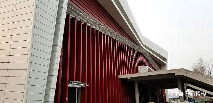 2、項(xiàng)目采用開(kāi)放式金屬幕墻系統(tǒng),凹槽、洞口、窗口、弧形造型、傾斜面折線、波紋造型的方案設(shè)計(jì),金屬板采用磚紅色金屬板,生產(chǎn)后直接發(fā)運(yùn)至現(xiàn)場(chǎng)安裝,金屬板顏色種類豐富且減少噴涂過(guò)程,縮短生產(chǎn)工期;