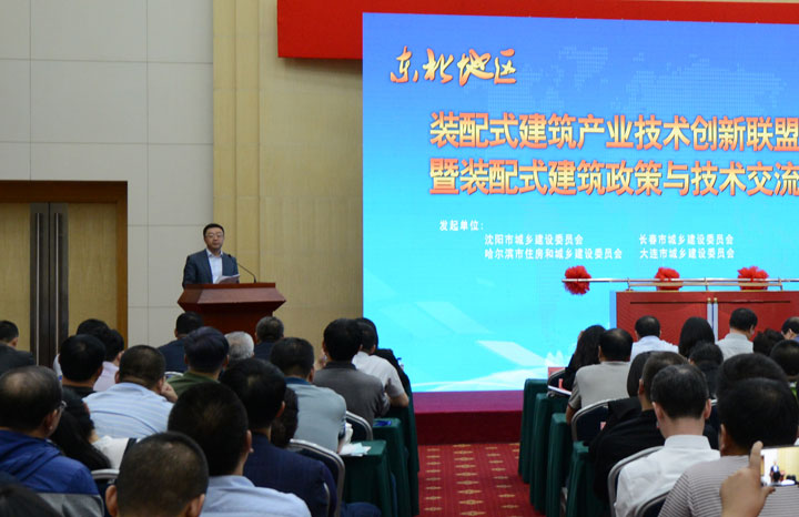 5月18日在遼寧大廈禮堂同期舉辦的“東北地區(qū)裝配式建筑產(chǎn)業(yè)技術(shù)創(chuàng)新聯(lián)盟成立暨裝配式建筑政策與技術(shù)交流大會(huì)”與博覽會(huì)相映生輝。住建部建筑節(jié)能與科技司副司長(zhǎng)郭理橋、遼寧省住房和城鄉(xiāng)建設(shè)廳副廳長(zhǎng)李海洋參加活動(dòng)并講話。洪長(zhǎng)禧會(huì)長(zhǎng)代表沈陽(yáng)市裝配式建筑協(xié)會(huì)在大會(huì)上致辭,并與住建部及省廳領(lǐng)導(dǎo)共同完成聯(lián)盟的成立啟動(dòng)儀式。