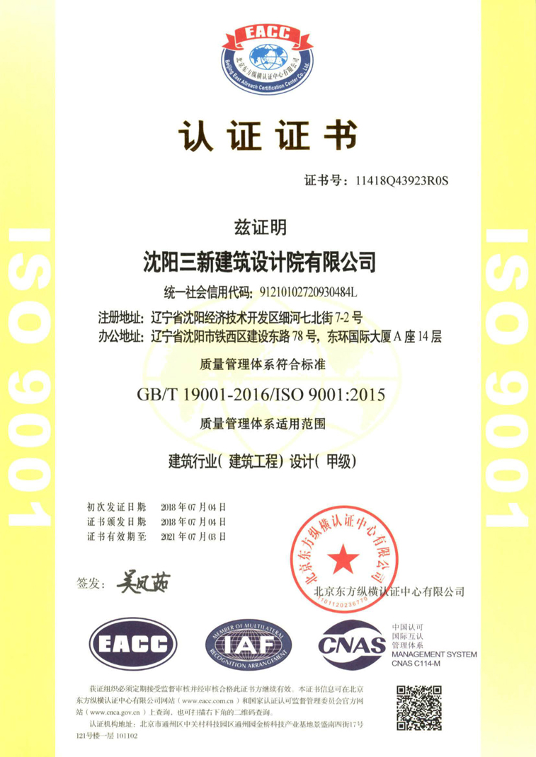 2018年6月28日~29日,北京東方縱橫認證中心對沈陽三新建筑設(shè)計院進行質(zhì)量管理體系認證審核,經(jīng)過兩天的審核,專家對公司的管理體系運行情況給予好評,滿足標準要求,同時也給出了切實的改進建議。公司組織各部門對審核過程中發(fā)現(xiàn)的不符合進行了總結(jié)討論,并針對存在的問題舉一反三,制定并實施整改計劃及預(yù)防措施,效果顯著。