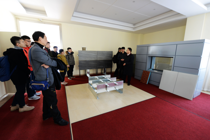 在揭牌儀式前,洪長禧總經(jīng)理及公司領(lǐng)導首先陪同客人參觀了公司生產(chǎn)基地及產(chǎn)品展廳,師生們對我公司先進的裝備及產(chǎn)品贊不絕口,尤其是裝配式建筑展品給師生們留下深刻的印象。