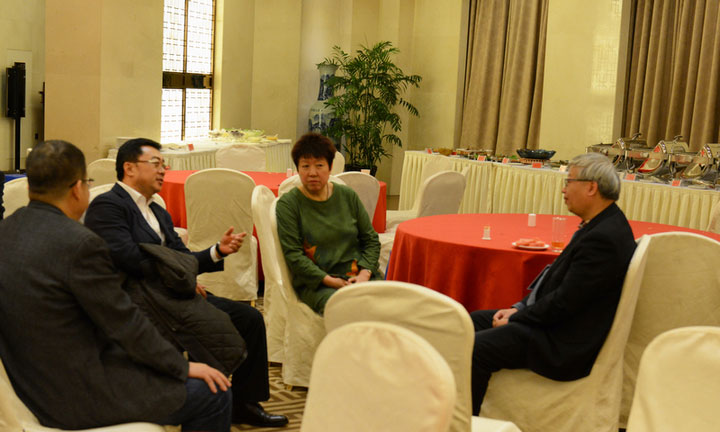 ▲洪長禧會(huì)長與杭蕭鋼構(gòu)副總裁、著名專家方鴻強(qiáng)交流