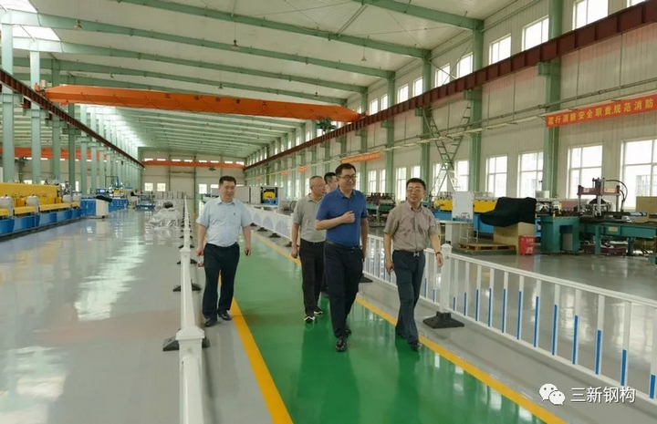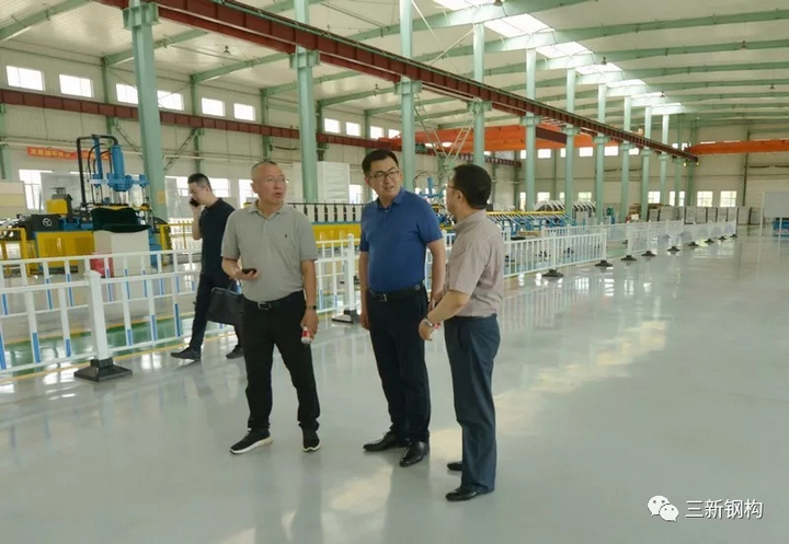 2019年7月3日,盛夏沈城,風(fēng)和日麗。遼寧省住建廳曹桂喆副廳長(zhǎng)、建筑業(yè)改革處王曉偉處長(zhǎng)、張慶峰副處長(zhǎng)一行來到三新集團(tuán)調(diào)研。