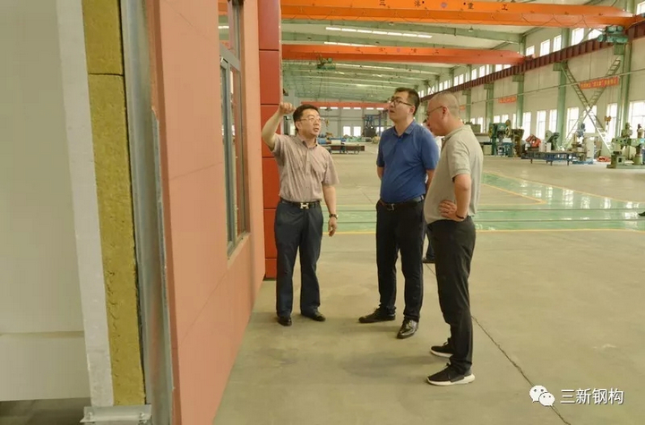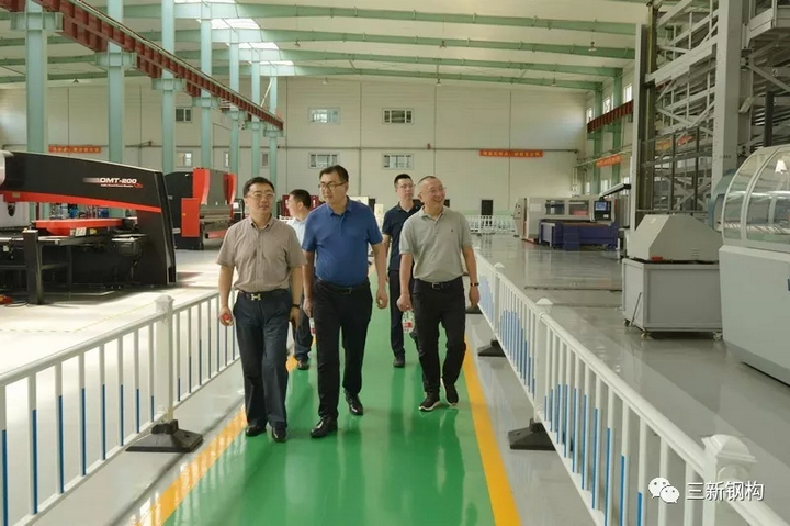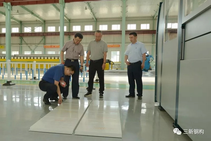 省廳領(lǐng)導(dǎo)在公司總經(jīng)理洪長(zhǎng)禧的陪同下參觀了公司裝配式建筑及幕墻生產(chǎn)基地和生產(chǎn)線,并對(duì)三新裝配式建筑實(shí)體模型和部品進(jìn)行了詳細(xì)的了解。曹廳長(zhǎng)、王處長(zhǎng)對(duì)三新裝配式鋼結(jié)構(gòu)建筑體系及先進(jìn)的生產(chǎn)裝備給予了高度的評(píng)價(jià),認(rèn)為產(chǎn)品設(shè)計(jì)理念、制作工藝、安裝水平達(dá)到國(guó)內(nèi)領(lǐng)先。