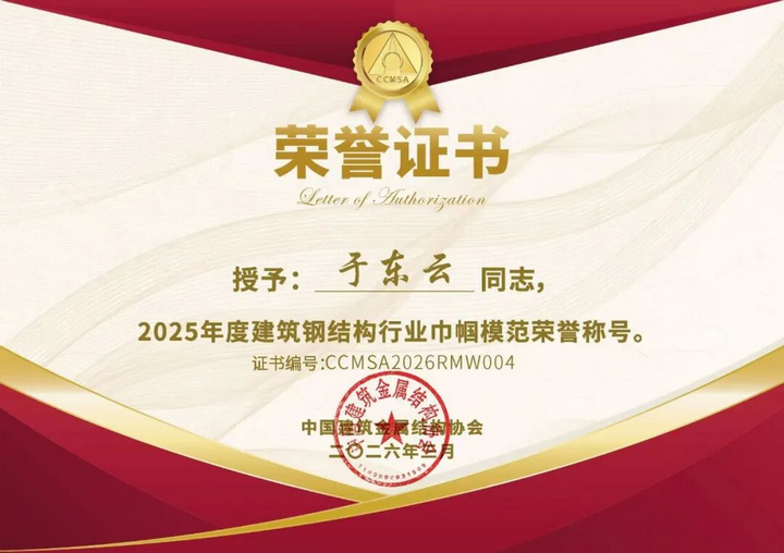 從“中國建筑金屬結(jié)構(gòu)協(xié)會所屬行業(yè)改革開放四十年突出功勛人物”到“行業(yè)卓越企業(yè)家”,從沈陽市“五一勞動獎?wù)隆鲍@得者到如今的“2025年度建筑鋼結(jié)構(gòu)行業(yè)巾幗模范”,一項(xiàng)項(xiàng)榮譽(yù)加身,是各級政府、行業(yè)各界對她多年耕耘的最好印證。這些榮譽(yù)的背后,是她對技術(shù)創(chuàng)新的執(zhí)著追求,是對品質(zhì)匠心的始終堅(jiān)守,更是對“產(chǎn)業(yè)報國,造福社會”宗旨的躬身踐行。