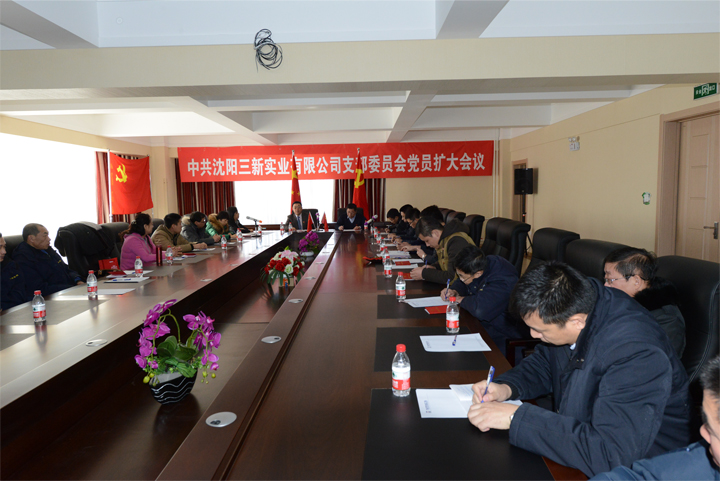 2014年12月13日上午9:30,中共沈陽三新實(shí)業(yè)有限公司支部委員會黨員擴(kuò)大會議在廠區(qū)綜合辦公樓四樓會議室召開。會議公布了本年展黨員名單,新黨員進(jìn)行了表態(tài)發(fā)言;會議討論并確定了明年發(fā)展黨員計(jì)劃;全體參會人員一同學(xué)習(xí)了黨章內(nèi)容。黨支部書記洪長禧總經(jīng)理以“在公司工作中如何發(fā)揮黨員先進(jìn)模范帶頭作用“為題做了主旨發(fā)言。最后由黨支部書記于東云董事長領(lǐng)誓,新黨員向黨旗宣誓并進(jìn)行佩戴黨徽儀式。通過本次會議,全體參會人員受到了一次愛黨教育及思想的洗禮。